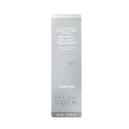 Das Herzstück jeder BABOR Formel sind sichtbare Ergebnisse. Das DOCTOR BABOR CLARIFYING Impurity SOS Spot Treatment hilft mit dem hocheffektiven 5,8% Zinc Ictasol Succinic Acid BHA Komplex gezielt Unreinheiten schnell und umfassend für ein ebenmäßigeres Hautbild zu minimieren. Das für den charakteristischen, flüchtigen Duft verantwortliche sulfonierte Schieferöl, Bernsteinsäure, Salizylsäure und Zink arbeiten synergetisch antibakteriell und werden von Experten für ihre entzündungshemmenden, abschwellenden und heilungsfördenden Eigenschaften empfohlen. Das Gel lässt sich handlich punktuell auf entstehende oder bestehende Unreinheiten auftragen und beugt postinflammatorischen Hyperpigmentierungen vor. Angereichert mit dem DOCTOR BABOR exklusiven BIOGEN PLANT EXTRAKT, die Krönung der Babor Forschung, werden die hauteigenen Prozesse angeregt und somit die jugendliche Agilität der Haut gefördert.