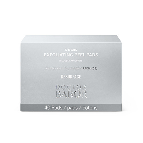 Das Herzstück jeder BABOR Formel sind sichtbare Ergebnisse. Die DOCTOR BABOR RESURFACE Exfoliating Peel Pads, der Nachfolger der DOCTOR BABOR Refine Exfoliating Peel Pads, verbessern durch die synergistische Wirkung dreier Furchtsäuren (Glykol-, Zitronen- und Milchsäure) mit einer Konzentration von 5% die Hautstruktur und bringen fahle Haut wieder zum Strahlen für ein ebenmäßigeres Hautbild. Sanft werden so abgestorbene Hautzellen chemisch und mechanisch entfernt. Dies sorgt einerseits für glattere, geschmeidigere Haut und kann darüber hinaus die Neubildung der Epidermis anregen. Angereichert mit dem DOCTOR BABOR exklusiven BIOGEN PLANT EXTRAKT, die Krönung der Babor Forschung, werden die hauteigenen Prozesse angeregt und somit die jugendliche Agilität der Haut gefördert.
