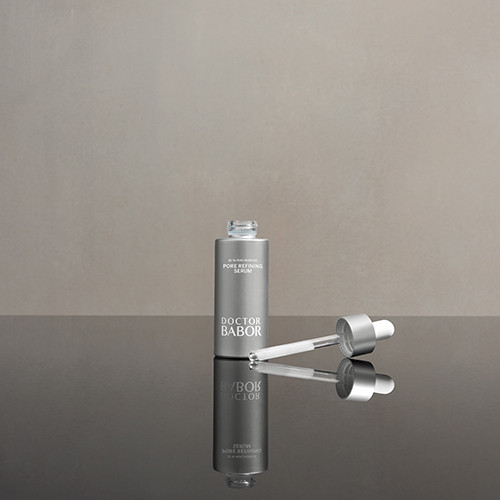 Das Herzstück jeder BABOR Formel sind sichtbare Ergebnisse. Das DOCTOR BABOR RESURFACE Pore Refining Serum, der noch leistungsstärkere Nachfolger des aktuellen Pore Refiners, hat einen mattierenden Effekt und hilft bei regelmäßiger Anwendung das Hautbild zu verfeinern. Niacinamide, Aktivstoffe aus der Babassu-Nuss, Rosa Canina sowie Reisstärke bilden einen Komplex zur Regulierung der Talgproduktion für einen mattierten Teint. Die Wirkstoffkombination verbessert bei regelmäßiger Anwendung das Hautbild bei Neigung zu Unebenheiten, Pickeln sowie vergrößerten Poren.