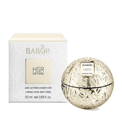 Die Anti-Wrinkle Cream Rich setzt dank dem verbessertem HSR lifting Wirkstoffkomplex neue Maßstäbe bei BABOR und bietet MEHR im kosmetischen Lifting. Sechs Hochleistungsinhaltsstoffe wirken effektiv gegen alle Faltenarten und gegen die Ursachen der Faltenentstehung. Mit ihrer geschmeidigen, satten Textur verwöhnt die HSR Anti-Wrinkle Cream Rich insbesondere trockene, anspruchsvolle Haut und kreiert ein einzigartiges Pflegeerlebnis bei jeder Anwendung.